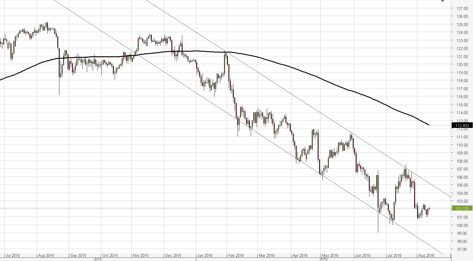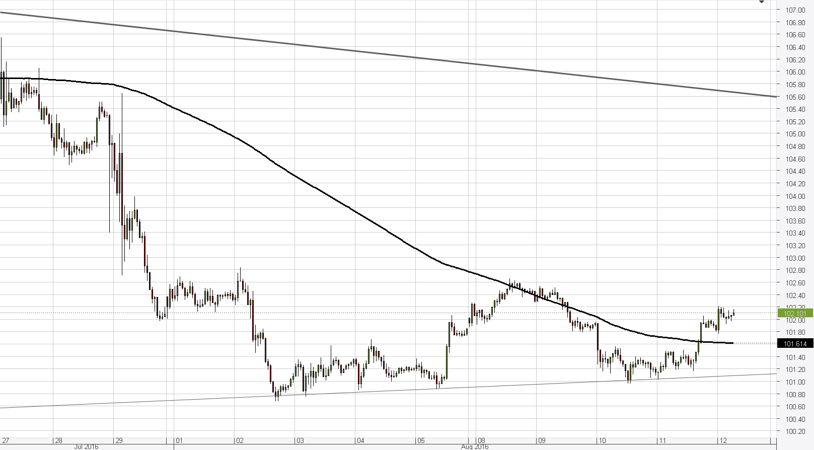 Although the USD/JPY currency pair completely erased Wednesday's losses yesterday and stabilised on top of the weekly PP again, technical indicators in all timeframes still suggest that more bearish momentum is to come. The 101.00 major level should be the bottom today, also being bolstered by the weekly S1. However, US fundamentals tend to surprise with strong figures, and another such surprise could trigger a rally today. The 102.50 mark should technically prevent the exchange rate from climbing higher, even though the nearest resistance lies circa 103.00.Daily chart
