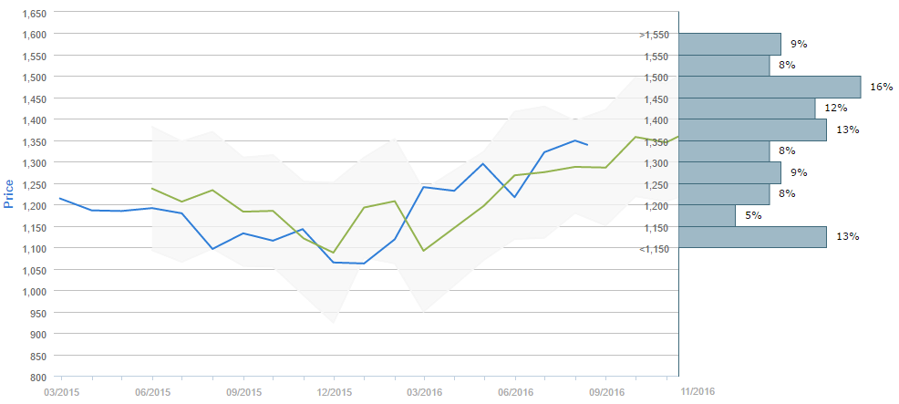 Market participants foresee the price of gold at 1,375 by November