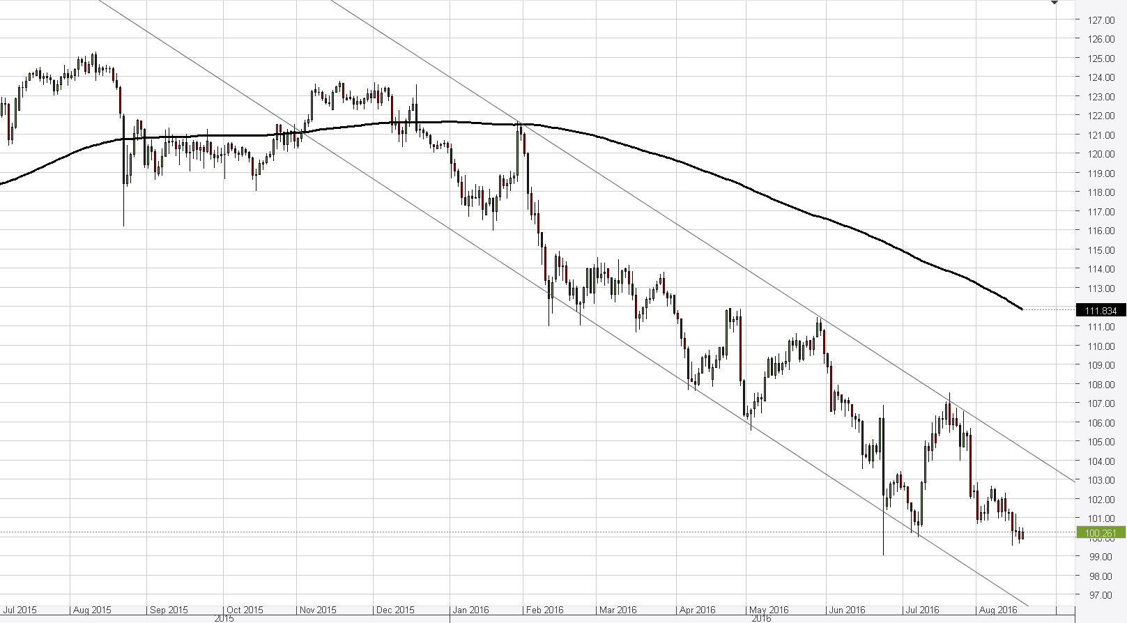 Slightly more than a half expect the exchange rate to fall below 105.00 yen