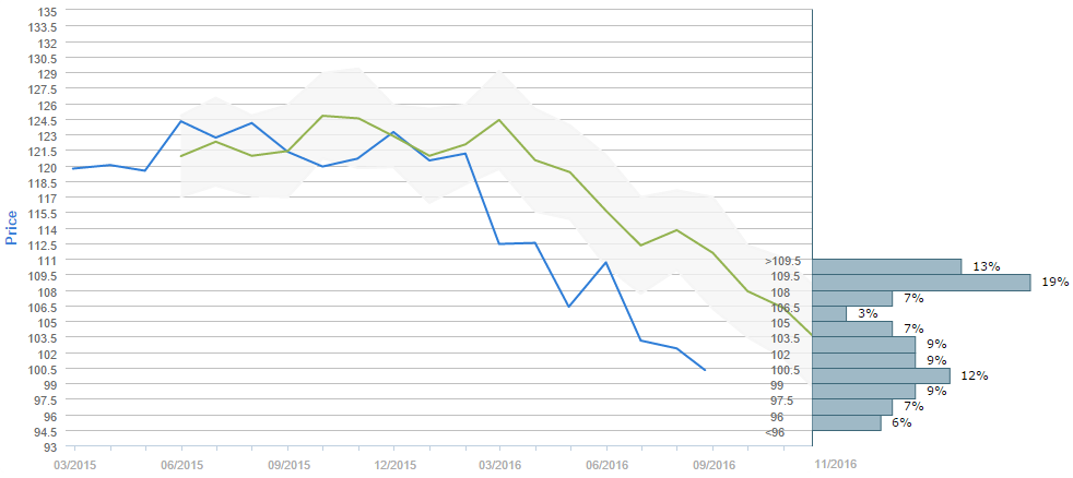 Slightly more than a half expect the exchange rate to fall below 105.00 yen