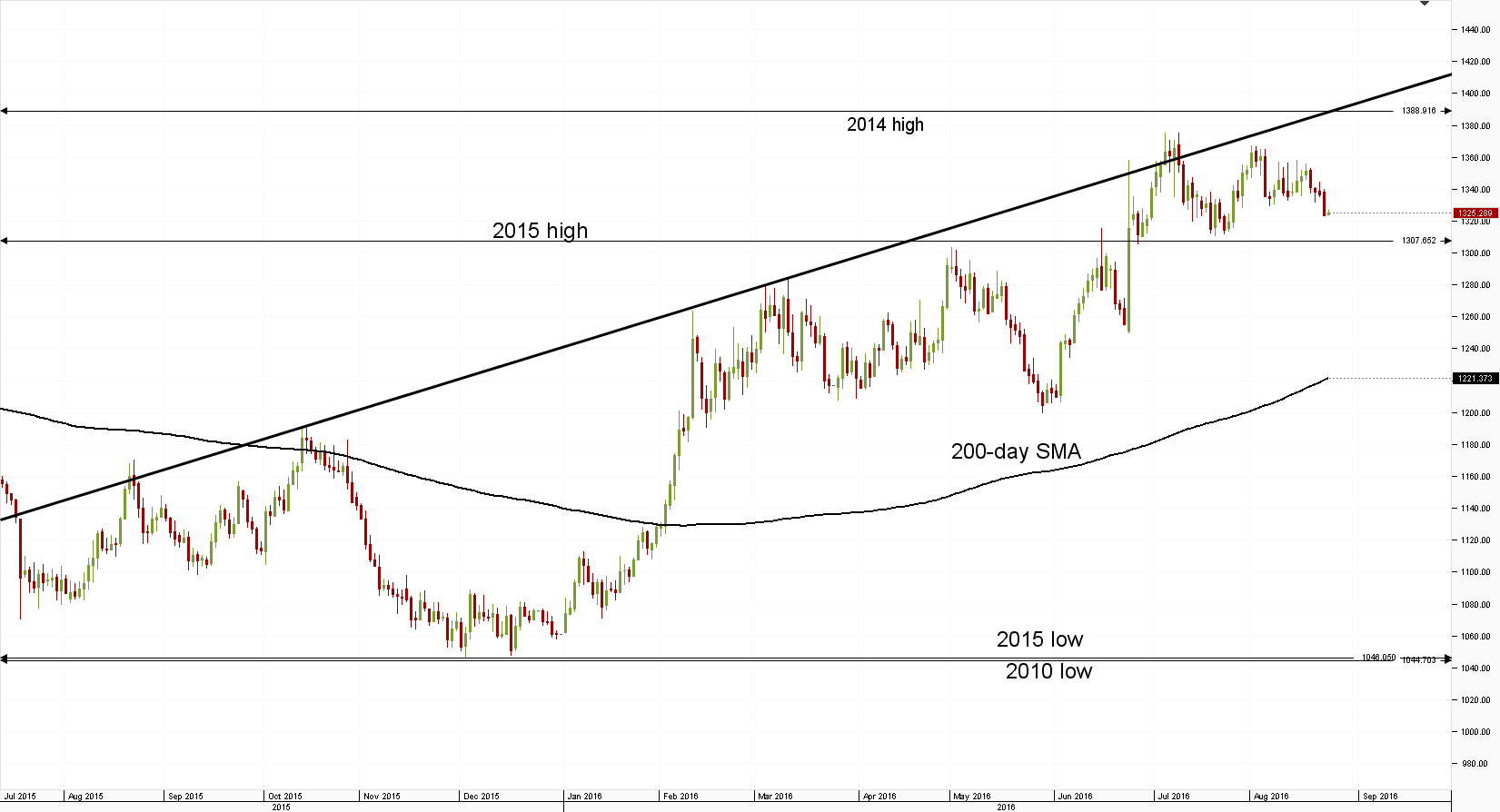 Thursday's gold price will be set by the US Dollar's strength and the Jackson Hole Symposium press conferences. Most important US data will be released at 12:30 GMT, when the Durable Goods Orders for August and Initial Jobless Claims for August 20 will be out and covered by Dukascopy live on the webinar. Afterwards, at 13:45 GMT the US PMI Services index will also affect the US Dollar's strength. However, more important will be the Symposium happening in Jackson Hole, Wyoming, USA, which will be attended by central bankers, finance ministers, academics and financial market participants from the whole world.