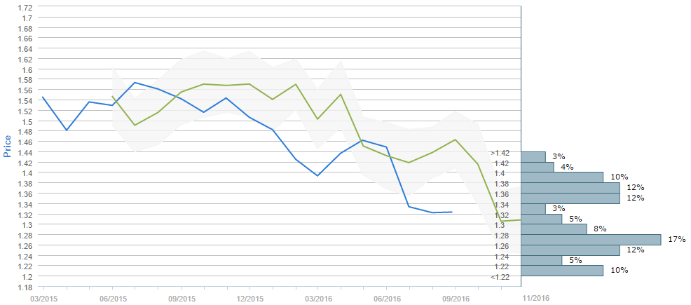 Slightly more than half of traders (52%) believe the British currency is to cost 1.30 or less dollars after a three-month period. The most popular price interval, however, was selected by 17% of the voters, namely the 1.26-1.28, while the second most popular choices imply that the Sterling is to cost either between 1.24 and 1.26 dollars, between 1.34 and 1.36 dollars or even between 1.36 and 1.38 dollars in three months, all three chosen by 12% of the surveyed. At the same time, the mean forecast for Nov 26 is 1.3077.