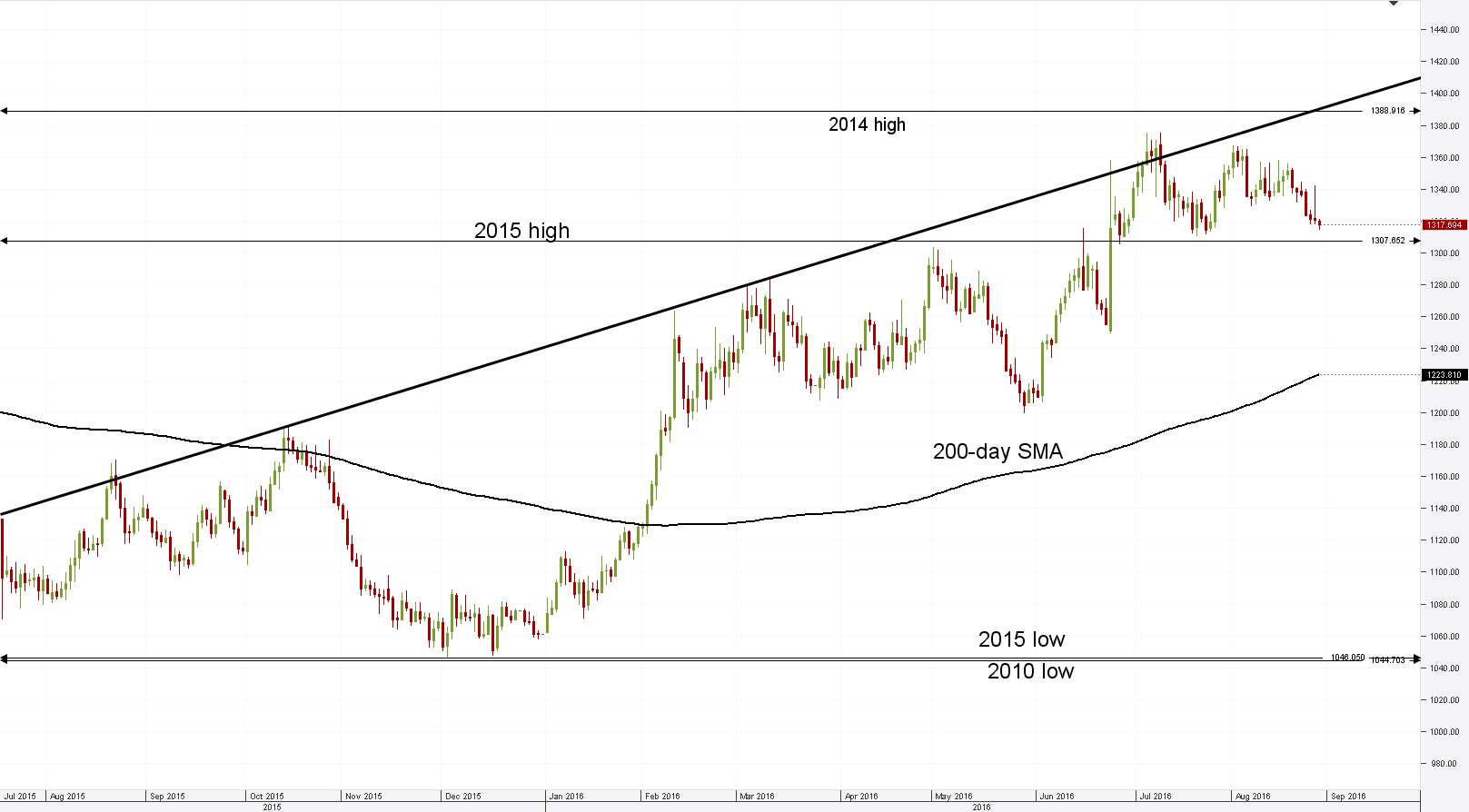 Traders who were asked regarding their longer-term views on gold between July 29 and August 29 expect, on average, to see the metal around 1,375 by the end of October. Generally, 55% (+2%) of participants believe the price will be above 1,400 in ninety days. Alongside, 29% of those surveyed reckon the price will trade in the range between 1,200 and 1,400 over the next three months