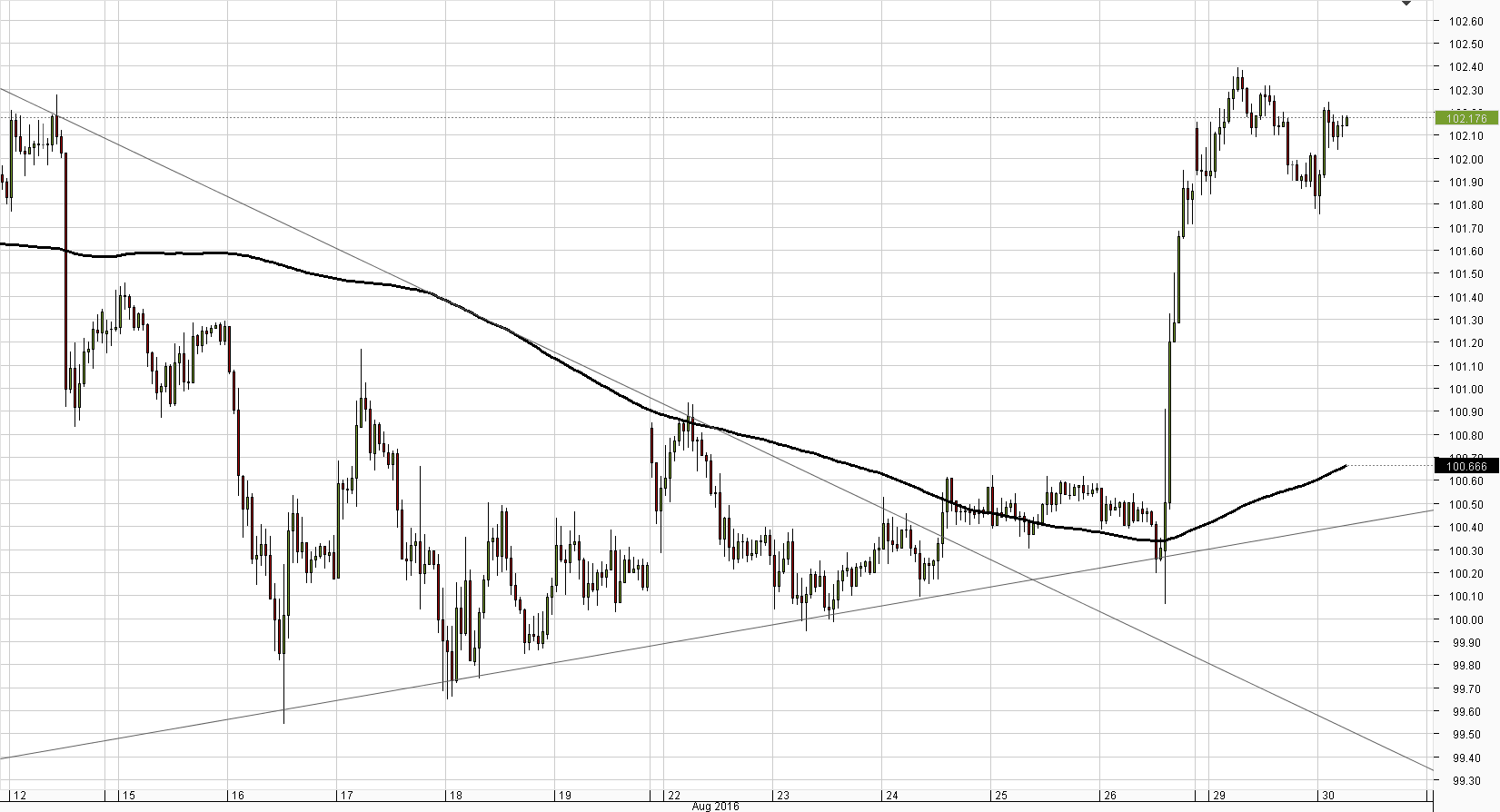 Tuesday is rather poor in terms of economic data releases, with the only relevant and important one being the US CB Consumer Confidence. The US CB Consumer Confidence captures the level of confidence that individuals have in economic activity. A high level of consumer confidence stimulates economic expansion, while a low level drives to economic downturn. A quiet before the storm, as tomorrow all attention will be on the ADP Non-Farm Employment Change.USD/JPY in tight range between 101.00 and 102.50