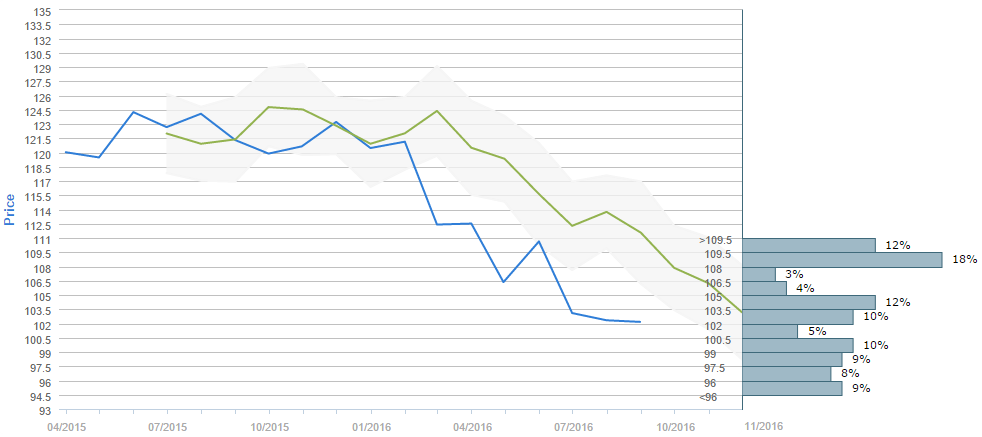 More than a half expect the exchange rate to fall below 105.00 yen