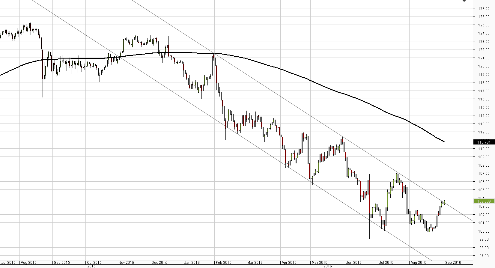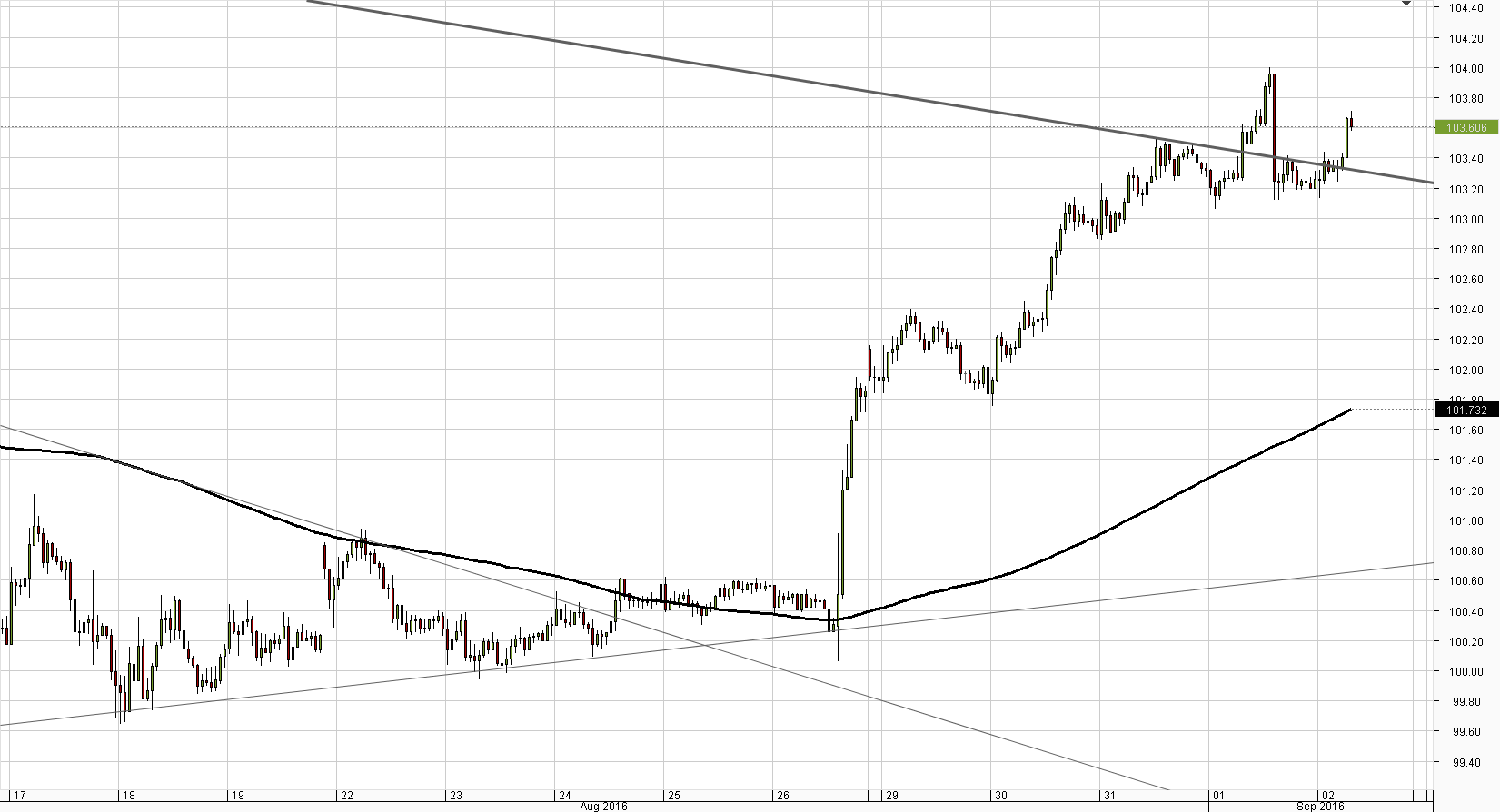 Even though the US Dollar weakened against the Yen on Thursday, the pair still experienced only an 18-pip loss. As a result, the eight-month down-trend received another confirmation and, technically, should trigger another USD/JPY sell-off. However, according to technical studies, that is not going to be the case, as signals suggest a rally. A breach of the immediate resistance cluster, represented by the weekly R2, the down-trend and the Bollinger band, could allow the Buck to retake the 104.00 level, which was also put to the test yesterday. Meanwhile, other data implies that the Greenback is to negate most of this week's gains, most likely ignoring the nearest support.Daily chart
