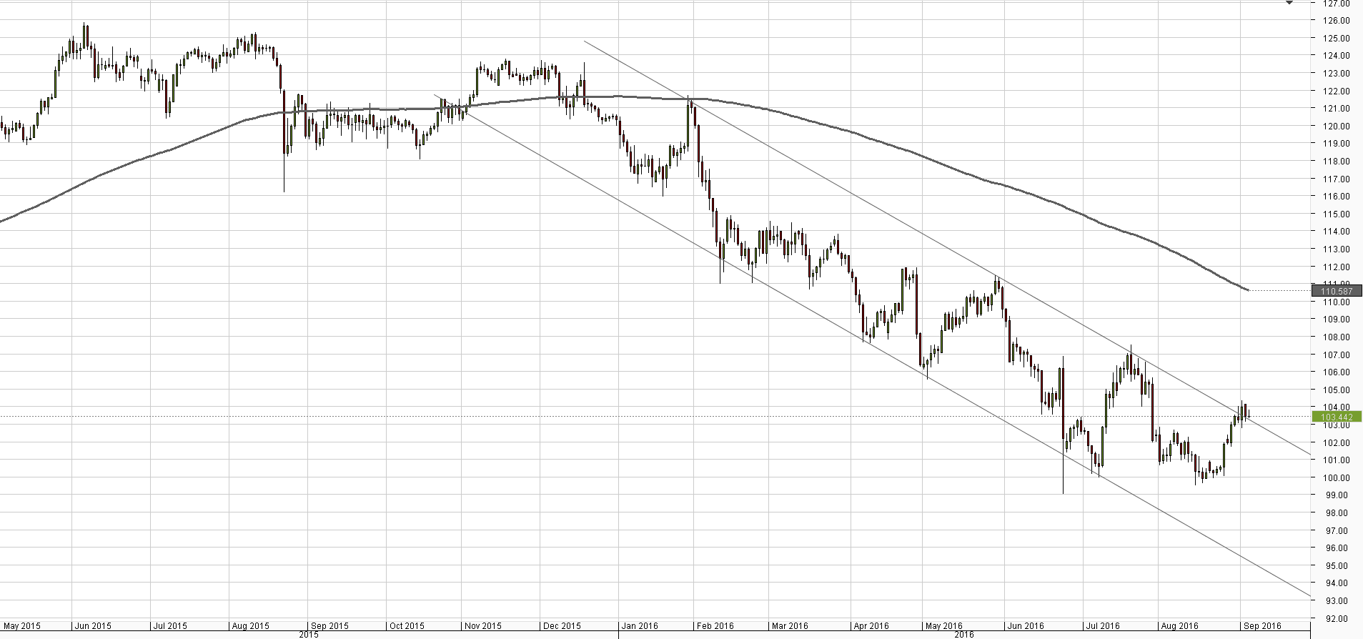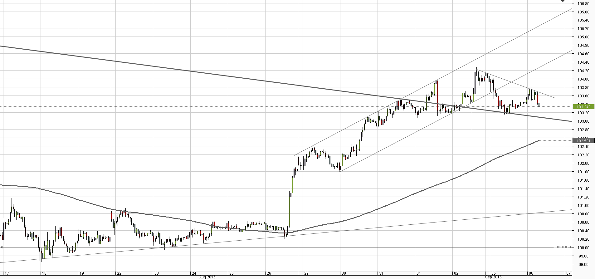 Yesterday the currency pair was mainly driven by Haruhiko Kuroda's lack of commitment to more easing by the Bank of Japan, as a result of which the Yen strengthened. Today the lead should be taken over by the United States Dollar, as US traders return from the holiday, and their activity will be fostered by the US ISM Non-Manufacturing PMI, which has remained comfortably above 50 since the beginning of 2010. Today's reading is expected to come in at 55.4 after 55.5 seen a month earlier.USD/JPY aims for 105 yen
