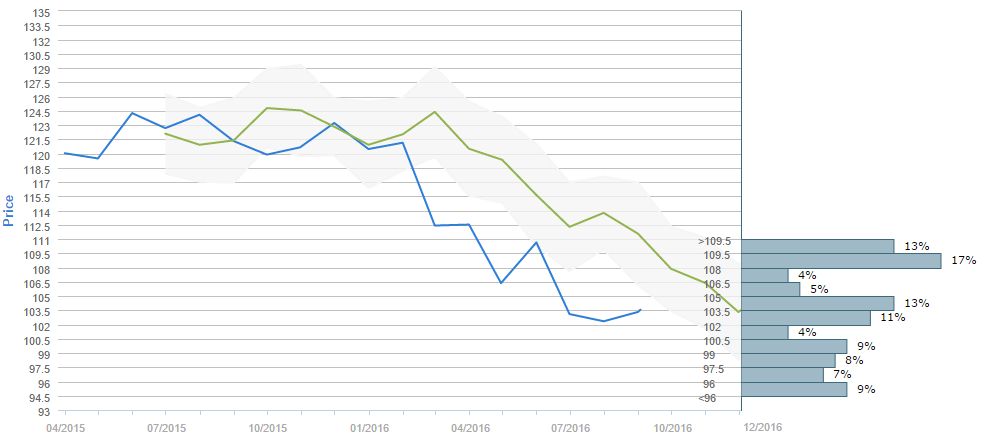 Regardless of Greenback's recent underperformance percentage of longs increased to 66%, as traders attempt to buy Dollar at low prices before the currency appreciates. Meanwhile, there is still no visible difference between the amounts of buy and sell orders.