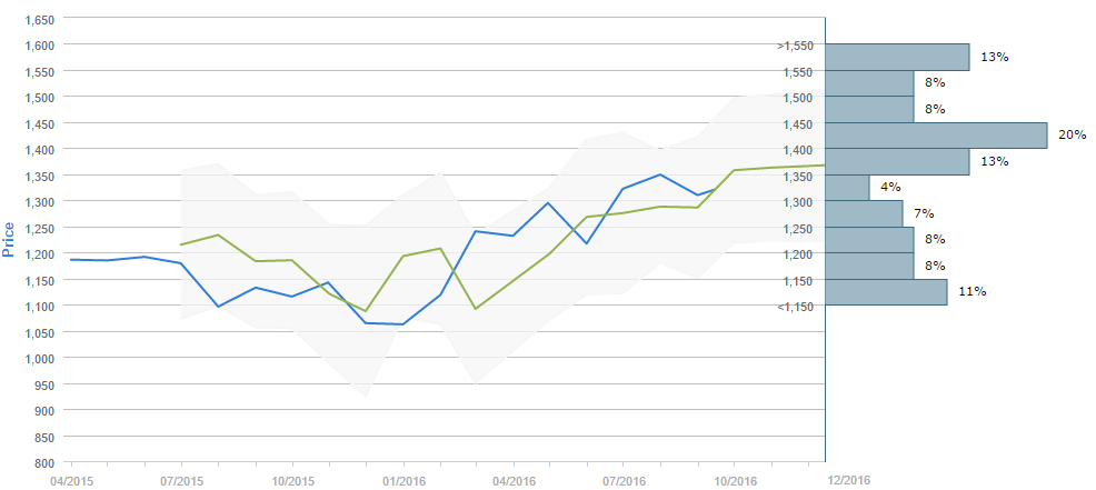 Traders who were asked regarding their longer-term views on gold between August 14 and September 14 expect, on average, to see the metal around 1,375 by the end of October. Generally, 49% of participants believe the price will be above 1,400 in ninety days. Alongside, 32% (+1%) of those surveyed reckon the price will trade in the range between 1,200 and 1,400 over the next three months