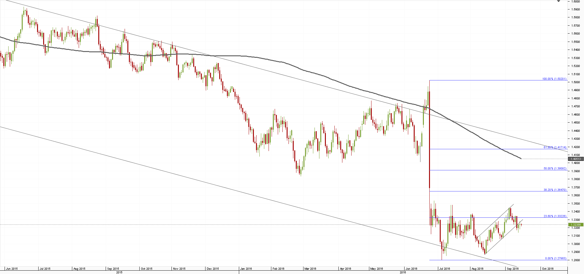 The Cable saw no change yesterday, finishing the day at the open price after testing both the resistance trendline and weekly S1 that is currently acting as support. Nevertheless, the bias is bearish, as the currency pair has recently broken out of the ascending channel to the downside. Next week we could see GBP/USD probing 1.2880 (August low and monthly S1), but there is also a notable demand area closer to the spot price, namely at 1.3126/12. This support zone is created by the monthly PP and weekly S2.
