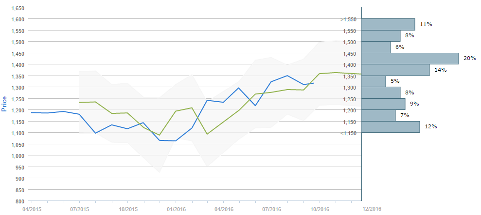 Market participants foresee the price of gold at 1,350 by December