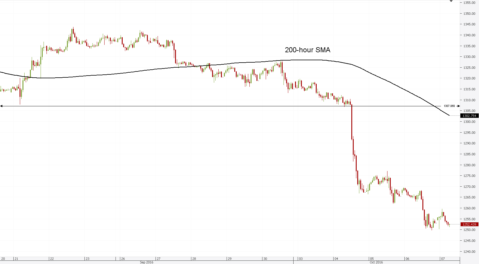 Hourly chart: By looking at the hourly chart for gold, it can be noticed that although the major support levels have been passed, the markets have found new levels to look at. First of all, it has to be noted that a chart can be covered with levels of significance in such a way that it would look like a piece of modern art. However, the strength of these levels varies, due to that the weaker lines become relevant in the events, as the most recent drastic fall of the yellow metal. To get to the point, a level of significance is around 1,264, and another one is the psychological 1,250.