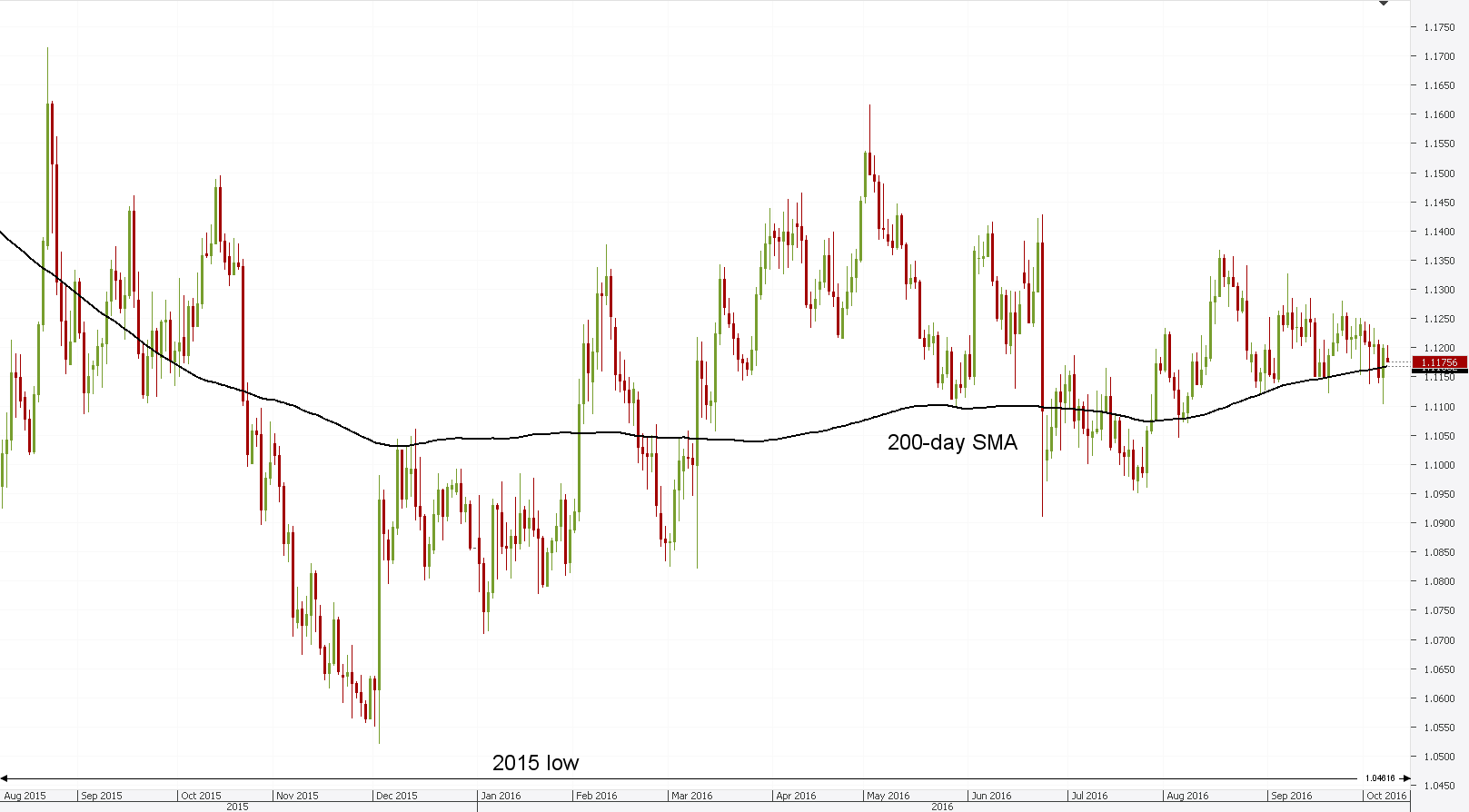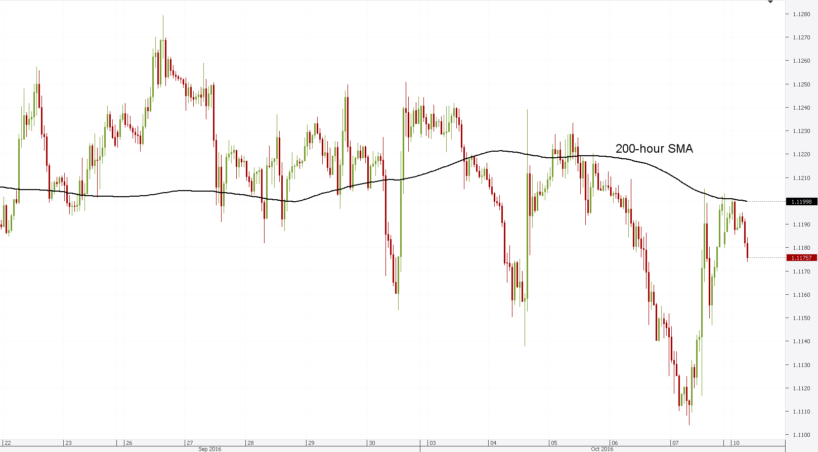 The Euro is in a rebound on Monday morning against the US Dollar, as the currency exchange rate found support in a channel down pattern's lower trend line on Friday. On early Monday morning the currency exchange rate began the day a few pips below the weekly PP at 1.1182, and the pair struggled to break through it. However, the common European currency is also prepped up against the Greenback by the 100 and 200-day SMA's respectively at 1.1180 and 1.1168.