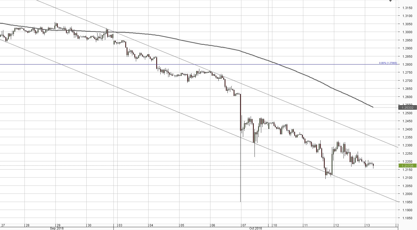 On the hourly chart the GBP/USD pair was seen trading in the middle between the descending channel's borders. We expect another retest of the lower boundary, as it would confirm the daily outlook. However, the Cable might struggle to fall below the 1.21 level and rebound earlier if a market mover turns into its favour.