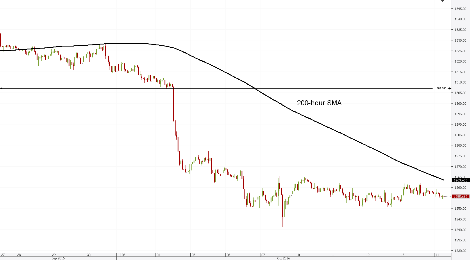 Hourly chart: The hourly chart for the yellow metal reveals, that the 55 and 100-hour SMAs have become secondary in dictating the metal's short term fluctuations. However, the combined strength of the 20, 55 and 100-hour SMAs did manage to hinder the commodities fall after it rebounded from the 200-day SMA.