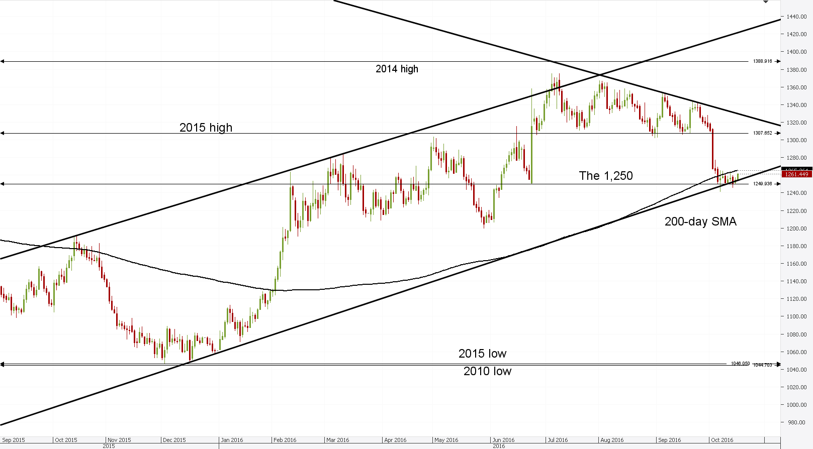 Gold breaks off from 1,250 level