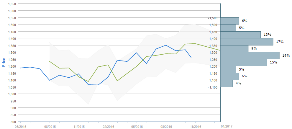 Traders who were asked regarding their longer-term views on gold between September 18 and October 18 expect, on average, to see the metal below 1,350 by January. Generally, 41% of participants believe the price will be above 1,350 in ninety days. Alongside, 43% of those surveyed reckon the price will trade in the range between 1,200 and 1,350 over the next three months.