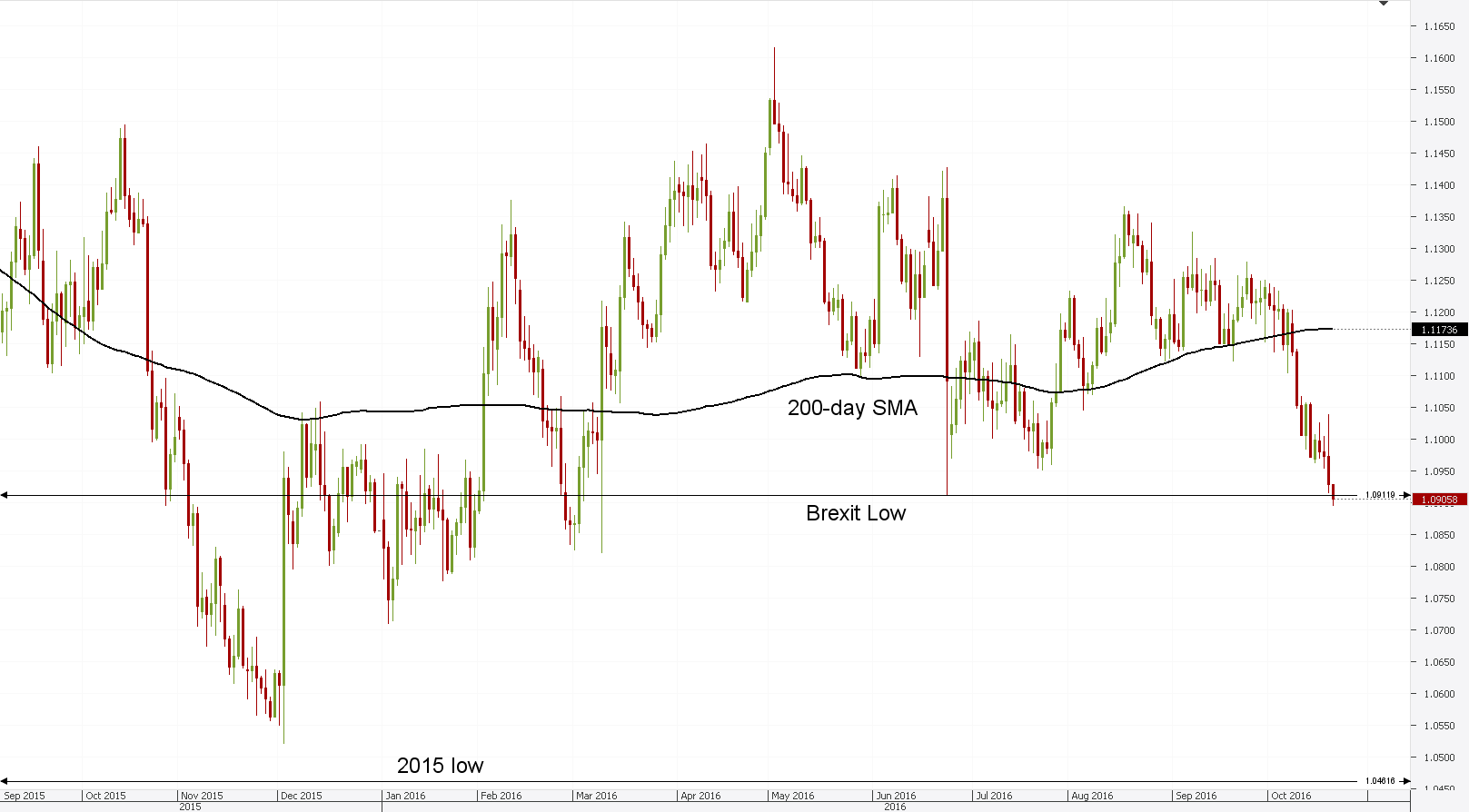 Not much of a surprise, but the EUR/USD fell below the Brexit low level of 1.0912. However, the future outlook of the pair is unclear, as some analysts even forecast the fall to continue down to the 1.05 level. That scenario might occur due to the fact that all monthly levels of significance and SMAs have been left behind far to the upside. Due to that, the only support levels, which might stop the fall will be the various historical low levels and weekly pivots.
