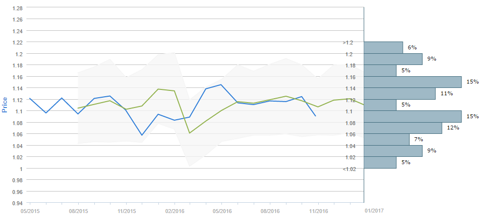 Average forecast says EUR/USD will trade below 1.12 in January