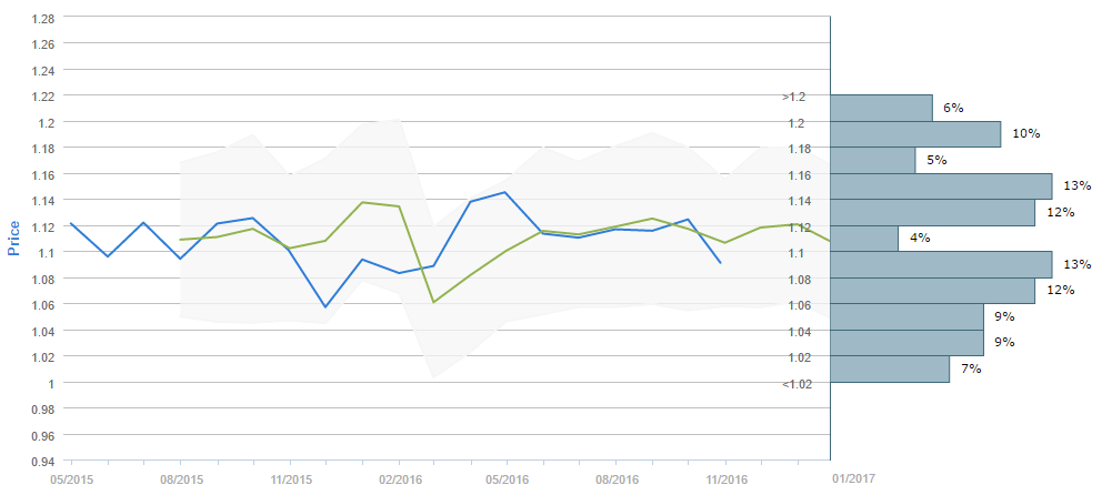 Average forecast says EUR/USD will trade below 1.12 in January