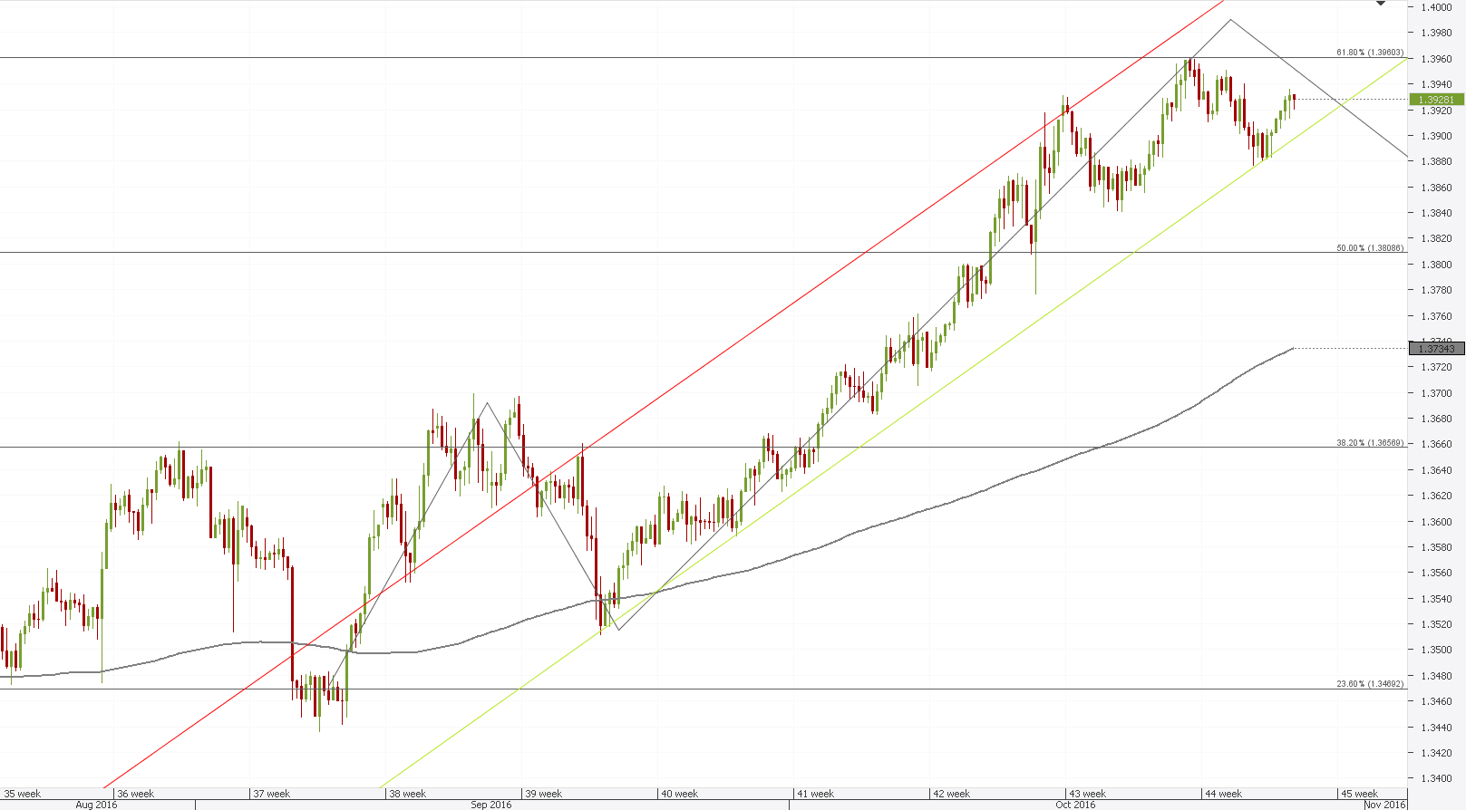 On a smaller scale the USD/SGD currency exchange rate is moving in an ascending channel pattern, as it struggles with the resistance set up by the 61.80% Fibonacci retracement level, which is a part of the retracement levels connecting the 2015 low and 2016 high levels. However, on a larger scale a head and shoulders pattern's first half can be drawn. Moreover, there does not seem to be any easy to notice, large scale pattern active. In addition, previous movements between the Fibonacci retracements are the ones, who have been the reason of the large scale patterns forming. For not the rate will continue to move in accordance with the channel. However, it is most likely become overbought in some time and reverse its direction. Due to that it is suggested to watch the market sentiment.