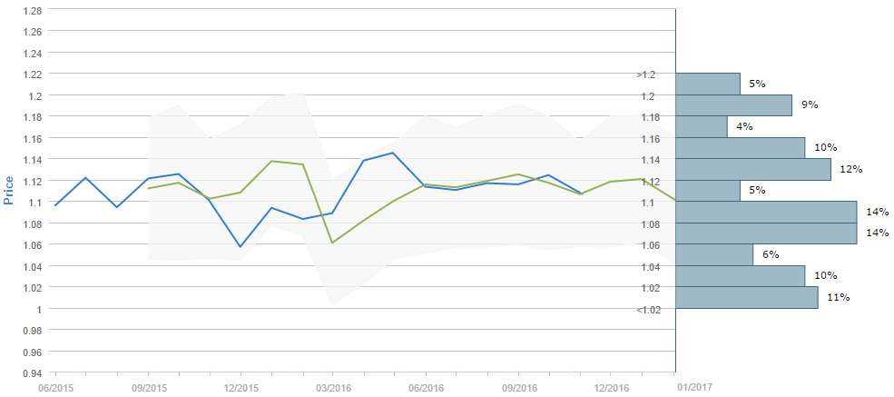 Average forecast says EUR/USD will trade at 1.10 in February