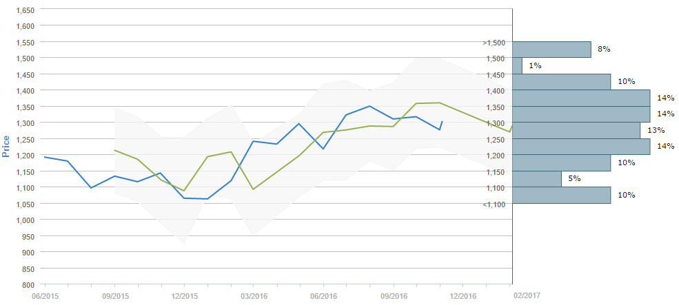 Traders who were asked regarding their longer-term views on gold between October 3 and November 3 expect, on average, to see the metal below 1,300 in February. Generally, 47% (-1%) of participants believe the price will be above 1,300 in ninety days. Alongside, 37% (+1%) of those surveyed reckon the price will trade in the range between 1,150 and 1,300 over the next three months.