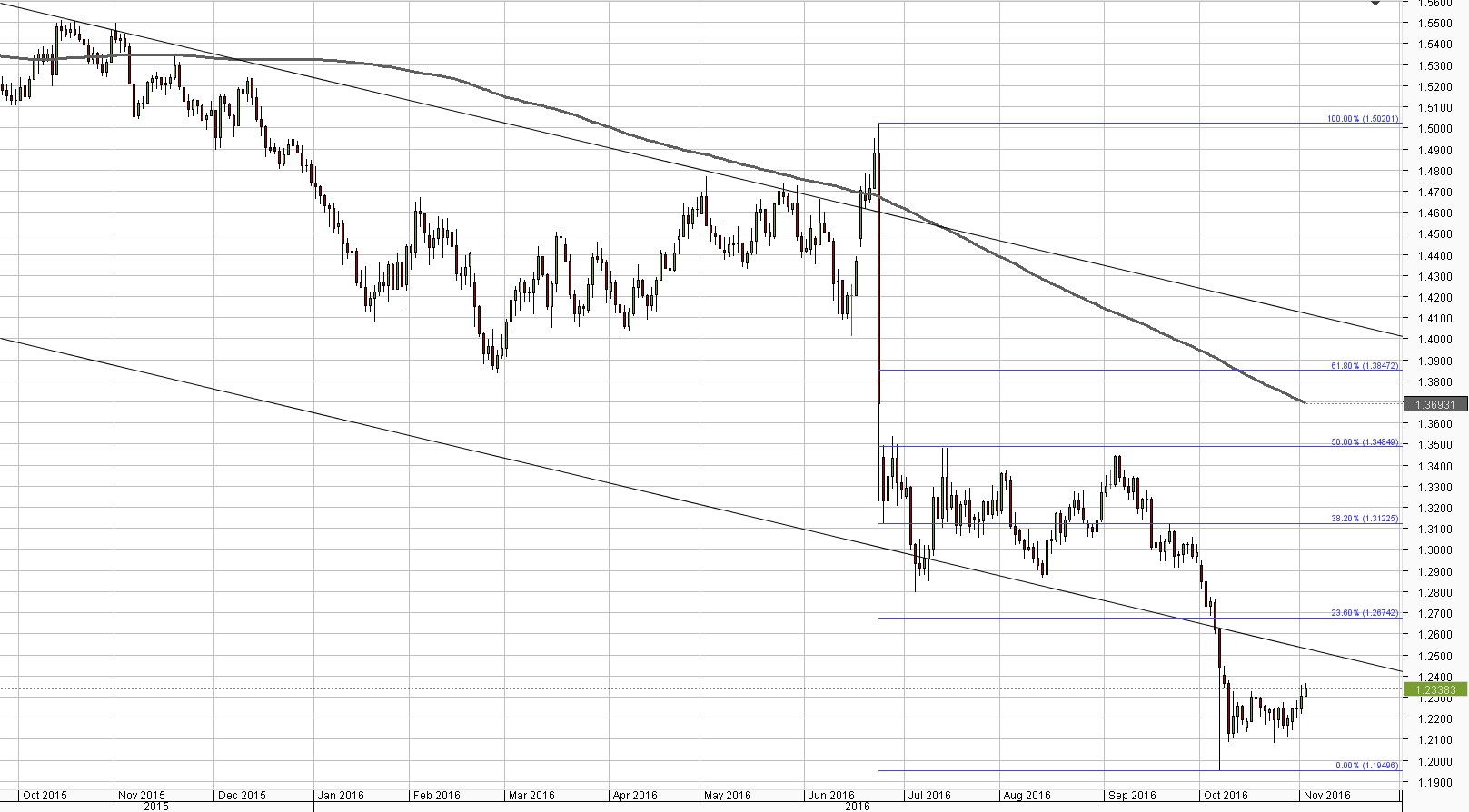 Wednesday ended with the Cable easily climbing over the 1.2250 level, thus, breaching the shorter period consolidation trend. Another bullish development today would imply a breach of the longer period consolidation, with the key resistance being the area around 1.2380, formed by the weekly R2, the monthly PP and the Bollinger band. Once this resistance is pierced, the British currency could partially negate its October losses ahead of the US election results. However, downside risks are also present, as the key resistance is reinforced by a seven-month down-trend. Furthermore, technical indicators are also in favour of a bearish development today.