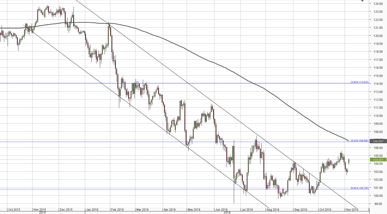The USD/JPY currency pair inched higher on Friday, despite a poor reading of the US NFP, thus, retaking the 103.00 level. Moreover, today the pair opened with a significant bullish gap, amid Clinton leading in the US presidential elections once again. The Greenback is now supported by a strong cluster, represented by the 20-day SMA, the monthly and the weekly PPs around 103.85, which is to prevent the Buck from sliding back down. Consequently, with another rally today the US currency will be close no negating all last week's losses, with the weekly R1 at 104.71 being the main obstacle. Technical studies are unable to confirm the outlook, as they retain mixed signals.Daily chart