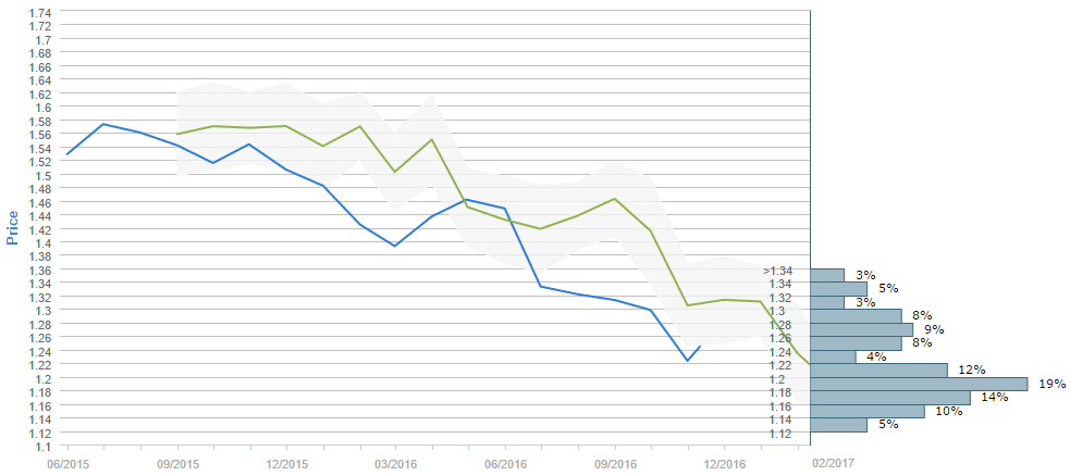 By the end of the next three months traders expect the Cable to be higher than the level where it is now. While the current price is around 1.24, the average forecast for November 10 is 1.2181. Furthermore, the 1.18-1.20 interval is now the most popular one, having 19% of the votes. On the second place in terms of the votes is the 1.16-1.18 (14%) interval, followed also by the 1.20-1.22 with only 12% of the votes. Moreover, 72% all survey participants believe the Cable is to fall under 1.26.