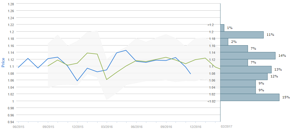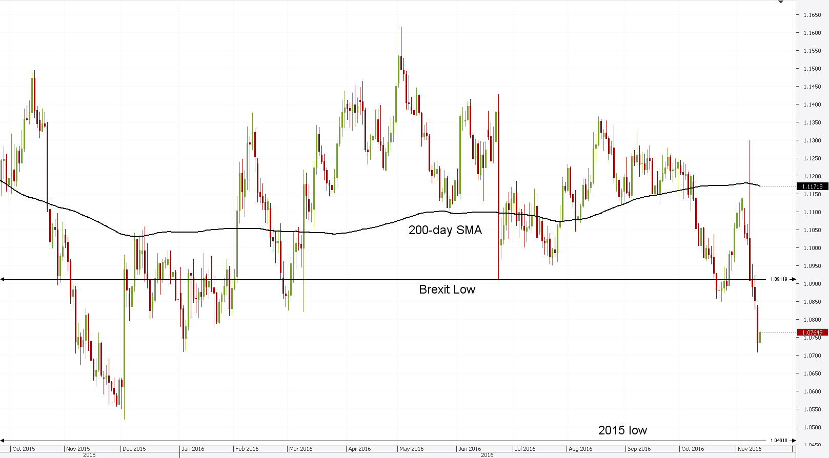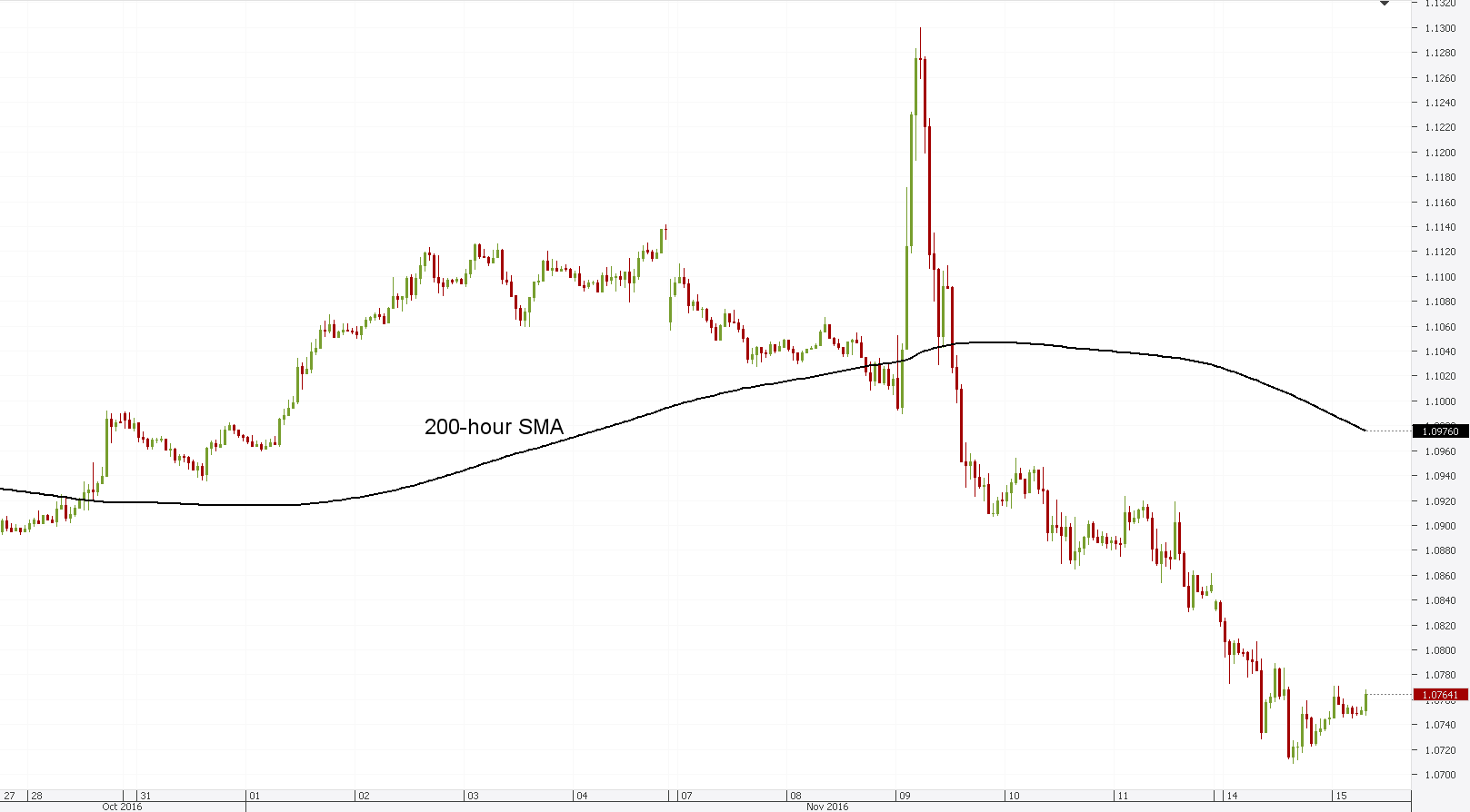 Hourly chart: The hourly chart for the EUR/USD pair reveals that the currency exchange rate has formed a descending channel pattern in the aftermath of the US election. Moreover, it can be seen that, as forecasted, the pair did reach the January low at 1.0709. There the Euro rebounded against the US Dollar and has scored minor gains since then. However, in general the rate is set to move lower.