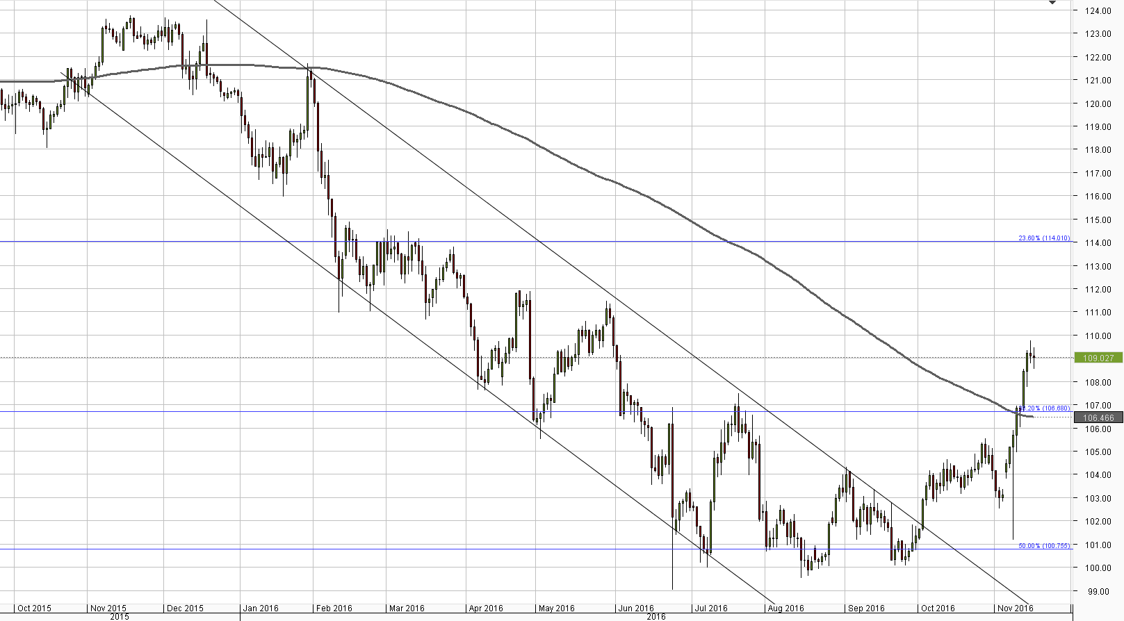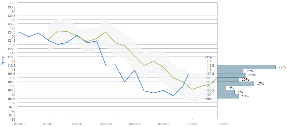 According to the poll that gathered forecasts between October 17 and November 16, traders expect the US Dollar to appreciate to 107.71 yen in three months' time, while the forecast for November 30 was only 103.30 yen. It is also worth noticing that 62% of all forecasts fall above 108 yen, which is close to the current spot price. The majority of people voted expect the US Dollar to cost somewhere between 111.00 and 112.50 yen in three months, with 27% of the survey participants choosing that trading range. Meanwhile, the second most popular interval is the 105.00-106.50 one, chosen by 17% of all the surveyed, compared to popularity of the 106.50-108.00, 108.00-109.50 and 109.50-111.00 intervals.