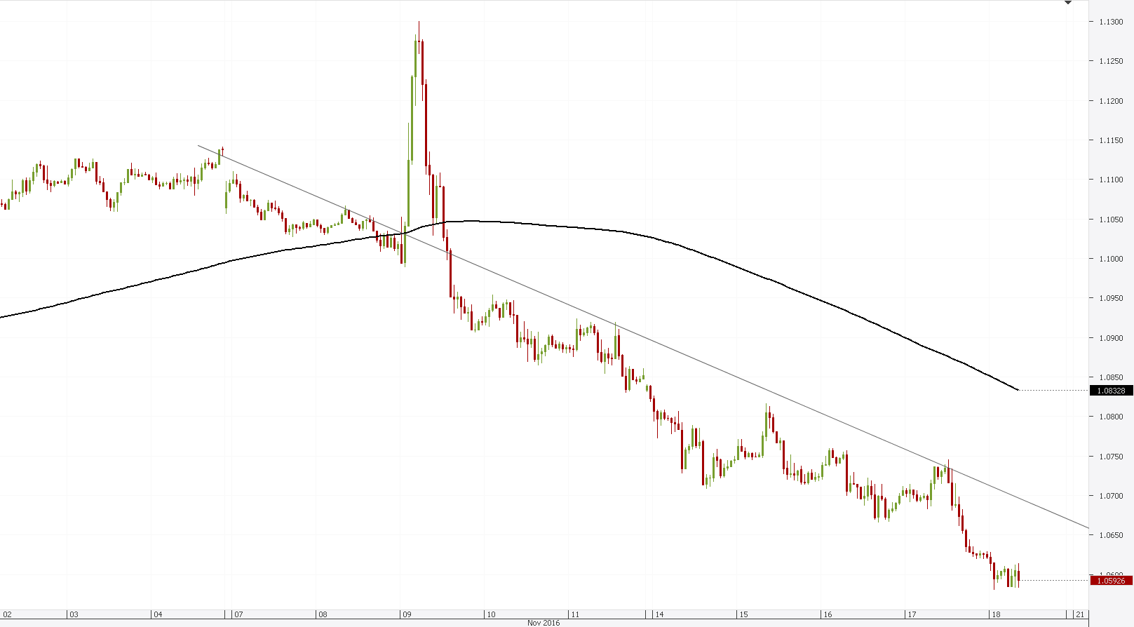 Daily chart: EUR/USD opened red for the tenth session in a row, eyeing 1.0556, the bottom Bollinger Band – hourly channel bottom trend-line confluence. There is little possibility that a break below the area would allow to extend weakness underneath 1.0525, meaning that we should see some demand pressures distracting the downward motion. The movement is facilitated by SMA pressures from above, and is technically reasoned by the conclusive break below the bottom trend-line of the eight-month descending channel.Daily chart