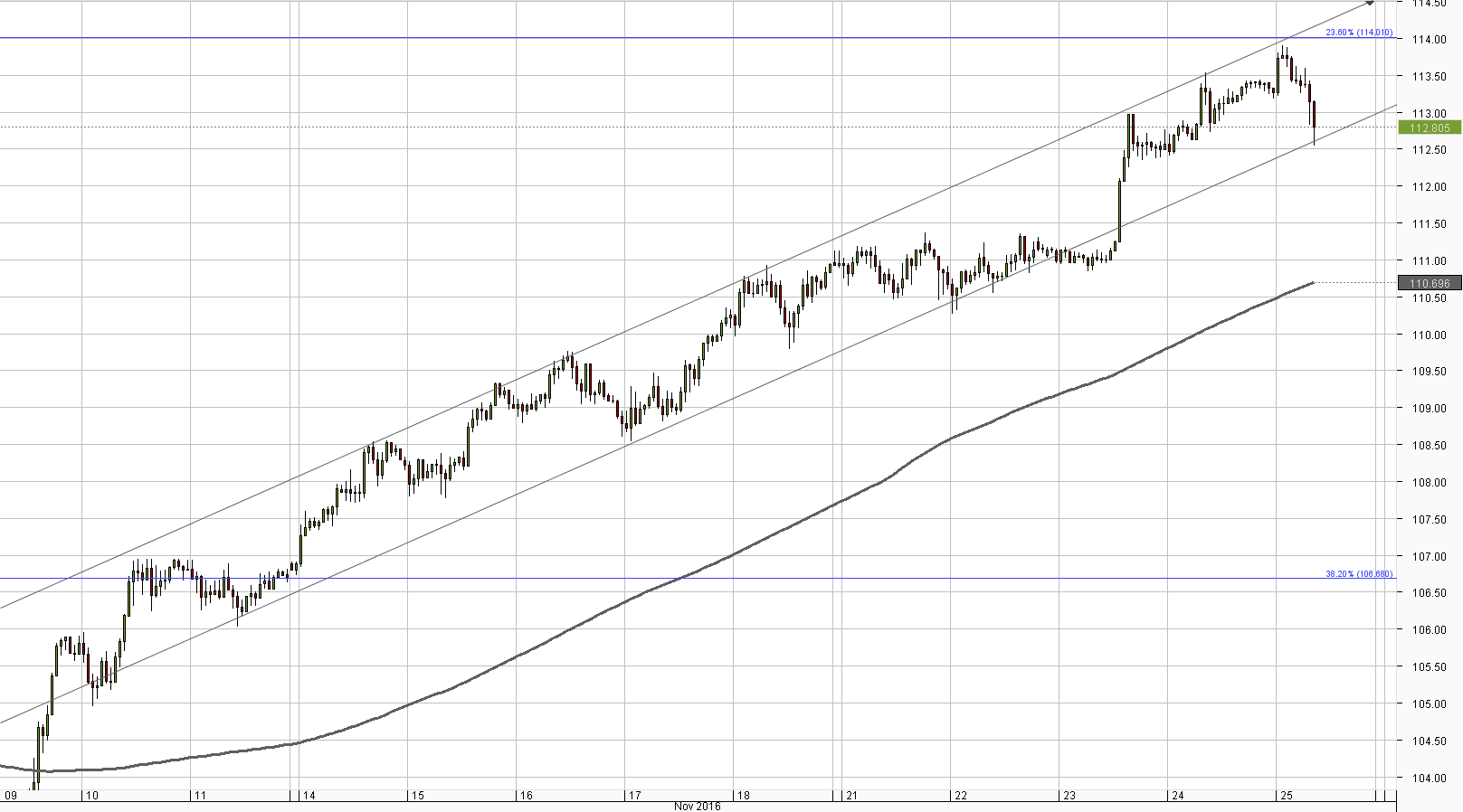 The USD/JPY currency pair behaved in accordance with expectations on Thursday, having successfully retaken the 113.00 level and leaving the immediate resistance area intact. Despite technical indicators retaining bullish signals, the Buck now is under higher risk of weakening against the Japanese currency, as the pair still faces a rather strong resistance, now formed by the weekly R2 and the 23.60% Fibo. Even if bulls manage to push the Greenback higher, a surge beyond the ascending channel's resistance line at 114.44 is unlikely. The base case scenario is a decline up to 100 pips, as a slump further would imply a downside breach of the channel pattern.Daily chart