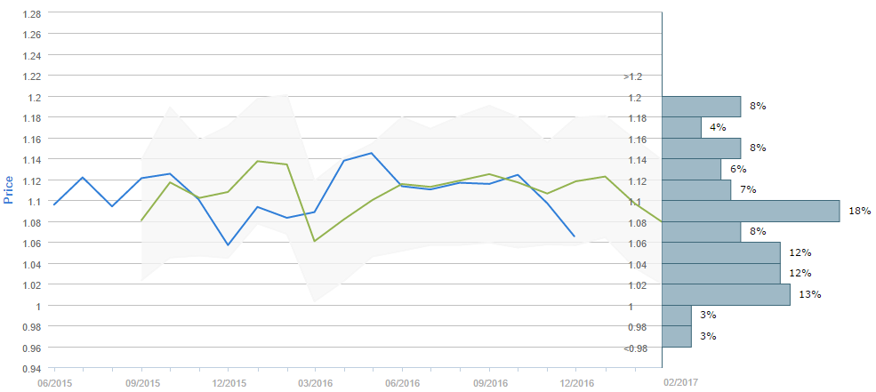 Average forecast says EUR/USD will trade around 1.08 by the end February