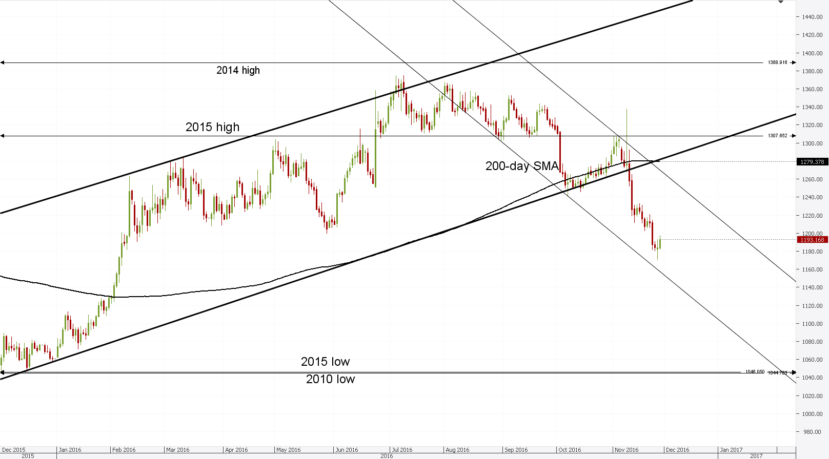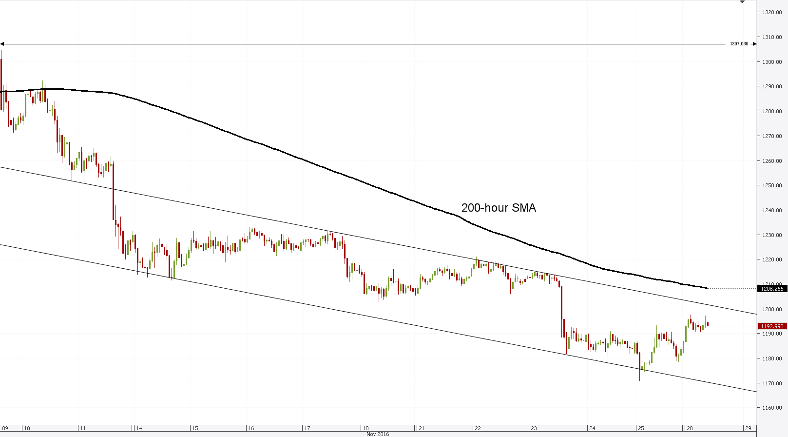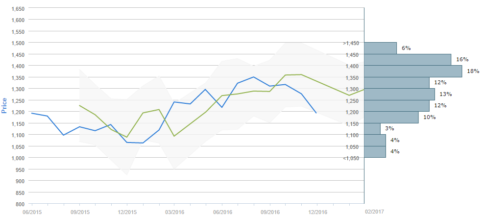 Traders who were asked regarding their longer-term views on gold between October 28 and November 28 expect, on average, to see the metal around 1,300 in late February. Generally, 52% (-1%) of participants believe the price will be above 1,300 in ninety days. Alongside, 35% (+1%) of those surveyed reckon the price will trade in the range between 1,150 and 1,300 over the next three months.