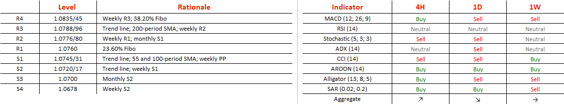 The Euro trades in a short term ascending channel against the Swiss Franc, as the currency exchange rate has broken out of a descending channel. Regarding a little bit of the background, the reason for the rates rebound and subsequent surge was one of the Fibonacci retracement levels, which connect the 15 January 2015 high and low levels. However, at the moment the pair has reached a resistance put up by a more recent Fibonacci retracement level, namely the 23.60% level of the 2016 high and low levels at 1.0760. Most recently the rate has been pressured by the ascending channel's lower trend line and the retracement level. The result is a short term triangle, and traders have to look for the outcome to understand the future direction of the pair.