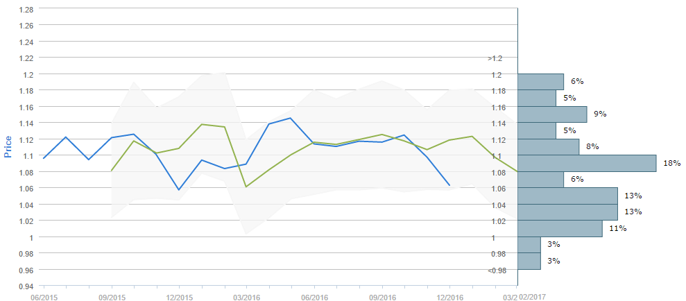 Average forecast says EUR/USD will trade around 1.08 by the end February