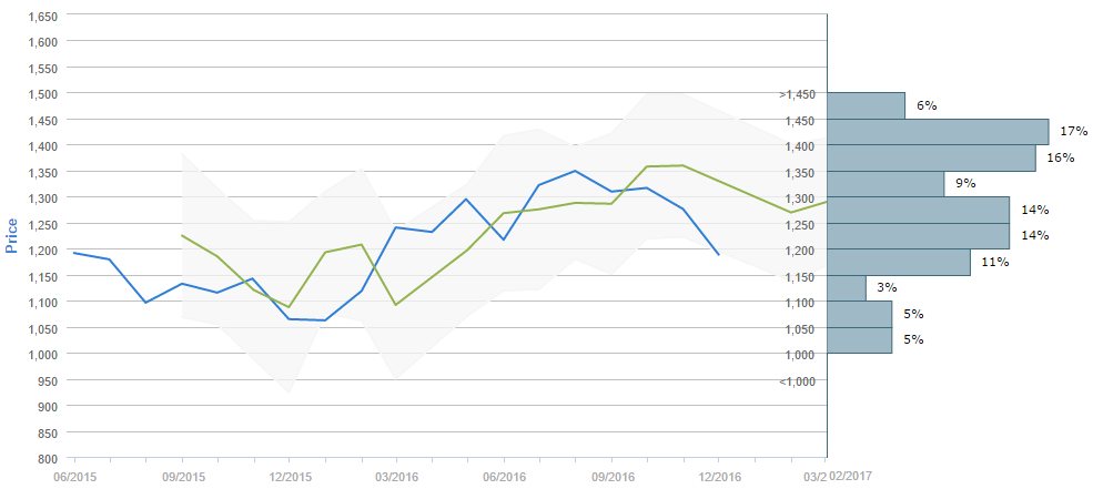 Traders who were asked regarding their longer-term views on gold between October 30 and November 30 expect, on average, to see the metal around 1,300 in late February. Generally, 48% (-2%) of participants believe the price will be above 1,300 in ninety days. Alongside, 39% (+2%) of those surveyed reckon the price will trade in the range between 1,150 and 1,300 over the next three months.