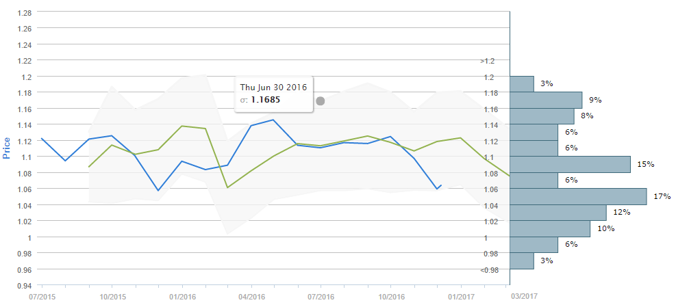 Average forecast says EUR/USD will trade around 1.075 by the start of March