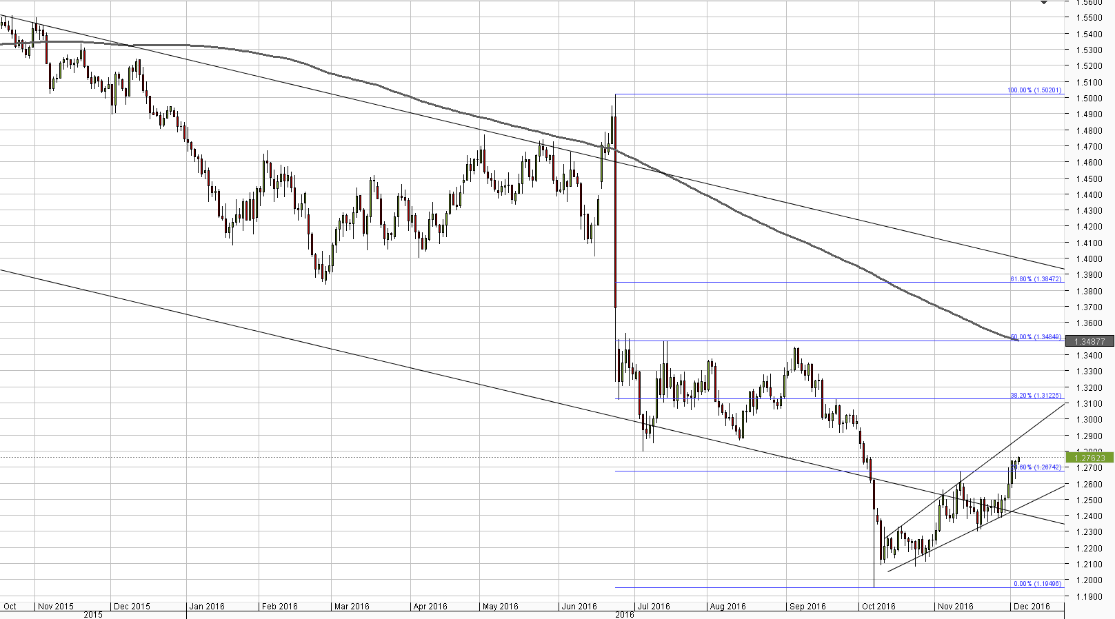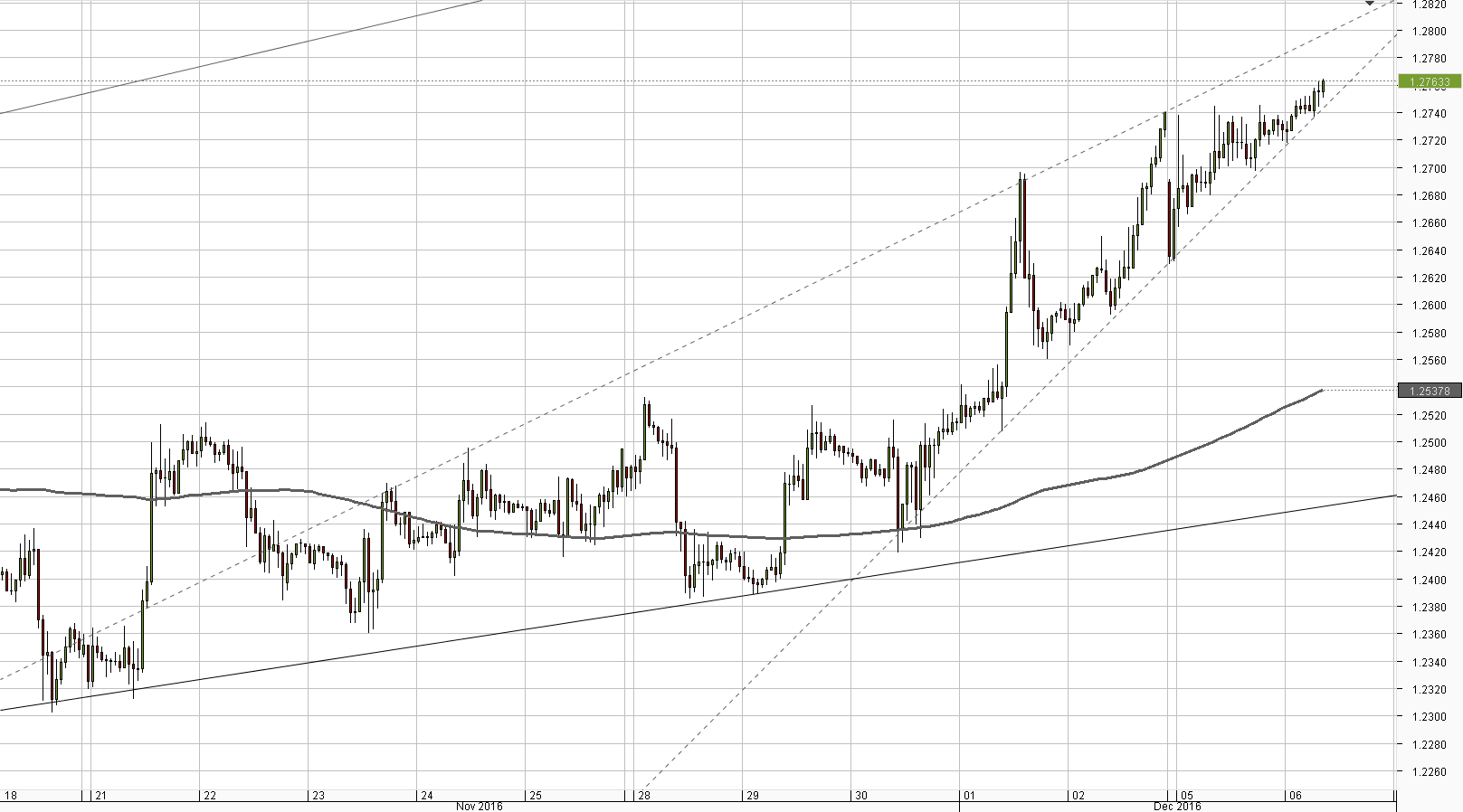 Even though the British currency successfully strengthened against the American Dollar yesterday, it still failed to maintain trade at a fresh two-month high, having closed at 1.2735. On one hand, the Cable could have reached its high for the moment, as technical indicators no longer suggest that more bullish momentum is to follow; on the other hand, the wedge's resistance line near 1.29 is yet to be reached, with sufficient space for a rally present. However, in order to reach the trend-line the pair is required to pierce the 100-day SMA, located around the 1.28 major level.