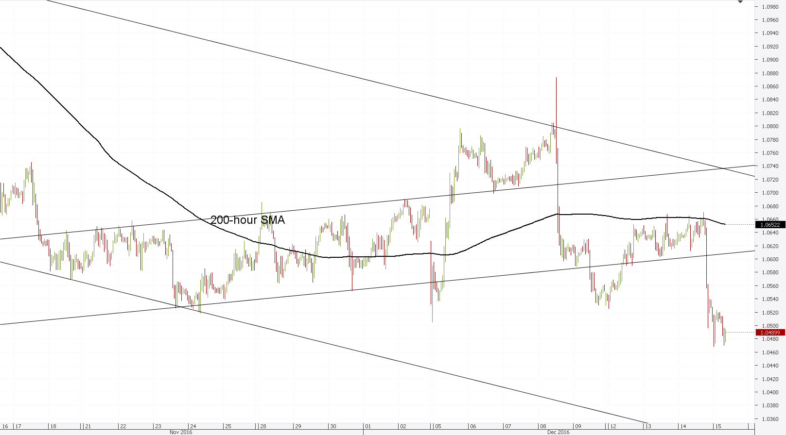 Hourly chart: The hourly chart confirms the gloomy outlook for EUR/USD with a dive below the significant 1.0550 level and a resistance set at 1.0520. The pair is currently testing the December 15 support level at 1.0486 and we expect it to dive below, opening the way for 1.0419, the weekly Pivot Point and the bottom Bollinger Band at 1.0414. SMAs putting bearish pressures from above will facilitate the movement north.