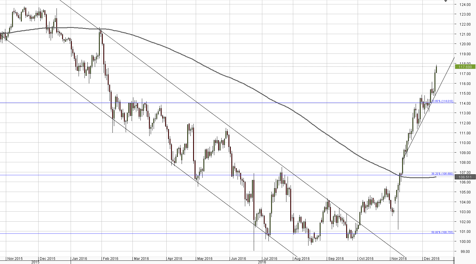 • The closest support rests around 116.75