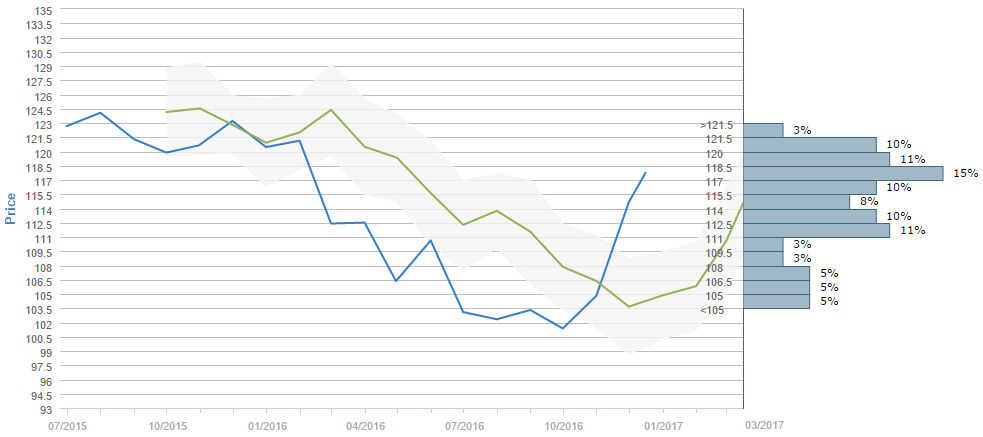 According to the poll that gathered forecasts between November 15 and December 15, traders expect the US Dollar to appreciate to 114.53 yen in three months' time, while the forecast for November 30 was only 103.30 yen. It is also worth noticing that 57% of all forecasts fall above 114 yen, which is close to the current spot price. The majority of people voted expect the US Dollar to cost somewhere between 117.00 and 118.50 yen in three months, with 15% of the survey participants choosing this trading range. Meanwhile, the second most popular intervals are the 111.00-112.50 and the 118.50-120.00 ones, with 11% of the votes each, also followed by the 112.50-114.00, 115.50-117.00 and the 120.00-121.50 intervals, chosen by 10% of all the surveyed.