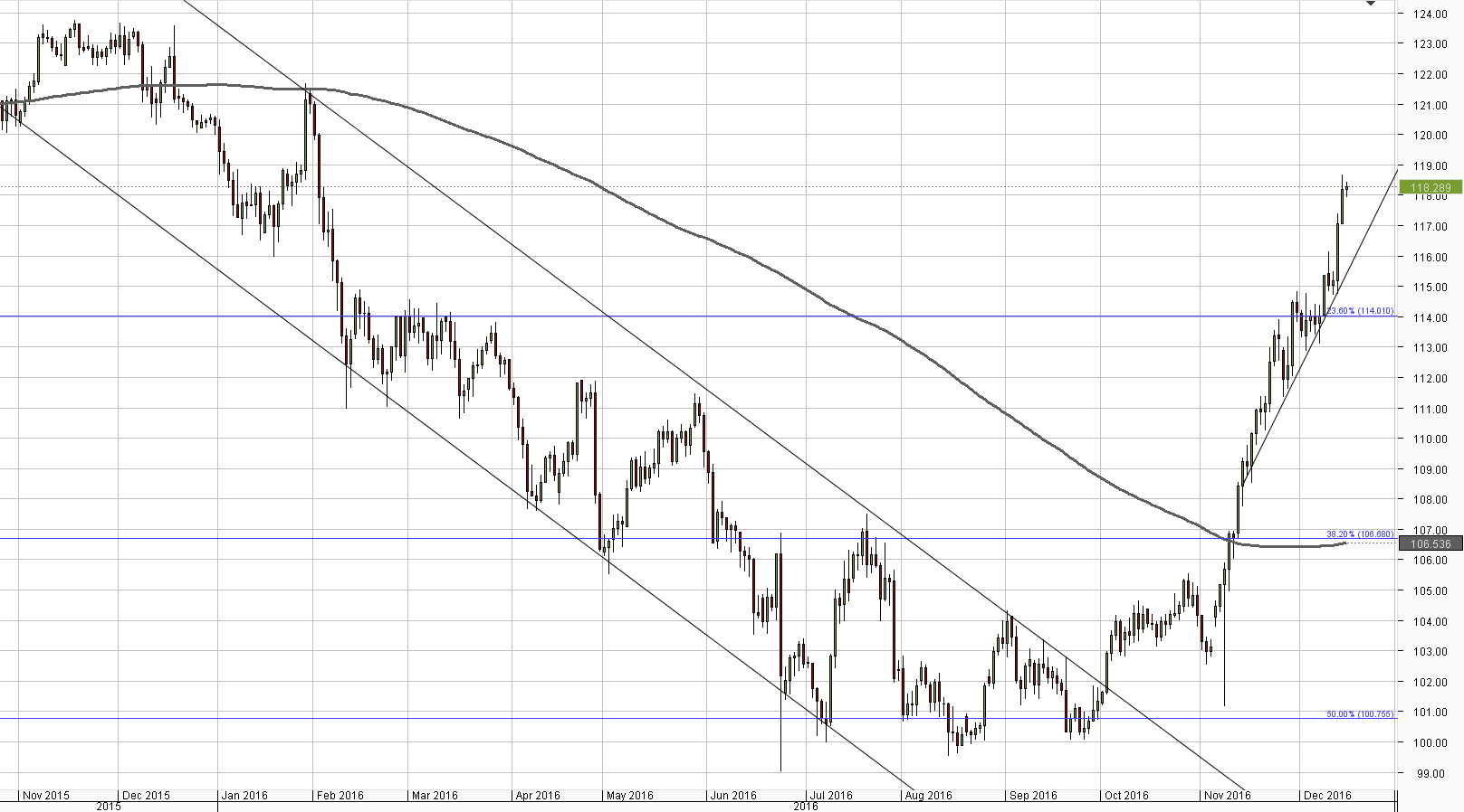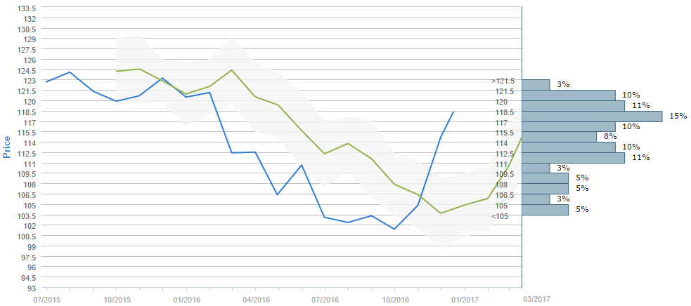 According to the poll that gathered forecasts between November 16 and December 16, traders expect the US Dollar to appreciate to 114.58 yen in three months' time, while the forecast for November 30 was only 103.30 yen. It is also worth noticing that 57% of all forecasts fall above 114 yen, which is close to the current spot price. The majority of people voted expect the US Dollar to cost somewhere between 117.00 and 118.50 yen in three months, with 15% of the survey participants choosing this trading range. Meanwhile, the second most popular intervals are the 111.00-112.50 and the 118.50-120.00 ones, with 11% of the votes each, also followed by the 112.50-114.00, 115.50-117.00 and the 120.00-121.50 intervals, chosen by 10% of all the surveyed.