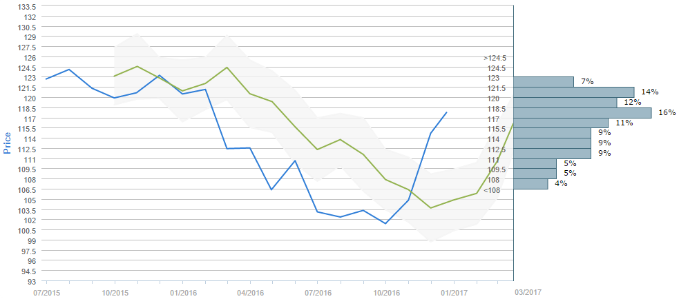 According to the poll that gathered forecasts between November 21 and December 21, traders expect the US Dollar to appreciate to 116.09 yen in three months' time, while the forecast for November 30 was only 103.30 yen. It is also worth noticing that 64% of all forecasts fall above 114 yen, which is close to the current spot price. The majority of people voted expect the US Dollar to cost somewhere between 117.00 and 118.50 yen in three months, with 16% of the survey participants choosing this trading range. Meanwhile, the second most popular intervals is the 120.00-121.50 one, with 14% of the votes, also followed by the 118.50-120.00 interval, chosen by 12% of all the surveyed.