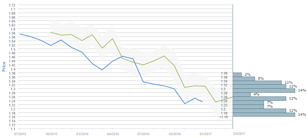 By the end of the next three months traders expect the Cable to be higher than the level where it is now. While the current price is around 1.24, the average forecast for March 22 is around 1.26. Furthermore, the 1.28-1.30 and the 1.16-1.18 intervals are now the most popular ones, having 14% of the votes each. On the second place in terms of the votes are the 1.30-1.32 (12%), 1.18-1.20 (12%) and 1.24-1.26 (12%) intervals, followed also by the 1.32-1.34 interval, with only 11% of the votes. Moreover, 58% of all survey participants believe the Cable is to rise above 1.24.