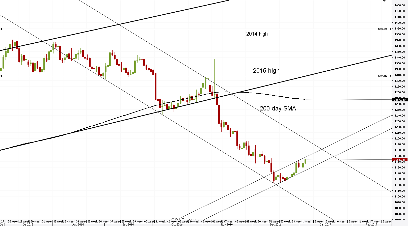 Daily chart: Gold opened green on Wednesday, eyeing the weekly R1 at 1,165.12 with some more risk at 1,168.25, the upper trend-line of the ascending channel. We will look for the pattern to hold for around one and a half weeks, when it will have served its purpose and led XAU/USD to the upper trend-line of the senior channel down. Support lies at 1,153.74/31and could as well come into play today, in case the pair requires a more complete wave to the bottom boundary at 1,145.23. Signals at the support area will serve as an indicator on whether the down-wave is complete and short-term demand will go on to guide the pair north.Daily chart