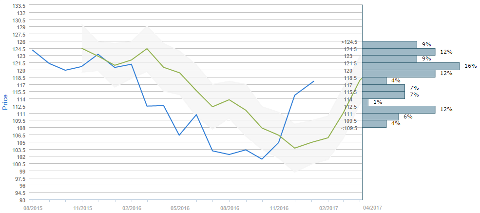 According to the poll that gathered forecasts between November 30 and December 30, traders expect the US Dollar to appreciate to 118.24 yen in three months' time, while the forecast for November 30 was only 103.30 yen. It is also worth noticing that 62% of all forecasts fall above 117 yen, which is close to the current spot price. The majority of people voted expect the US Dollar to cost somewhere between 120.00 and 121.50 yen in three months, with 16% of the survey participants choosing this trading range. At the same time, the second most popular interval were the 111.00-112.50, the 118.50-120.00 and the 123.00-124.50 ones, with 12% of survey participants choosing each of them.
