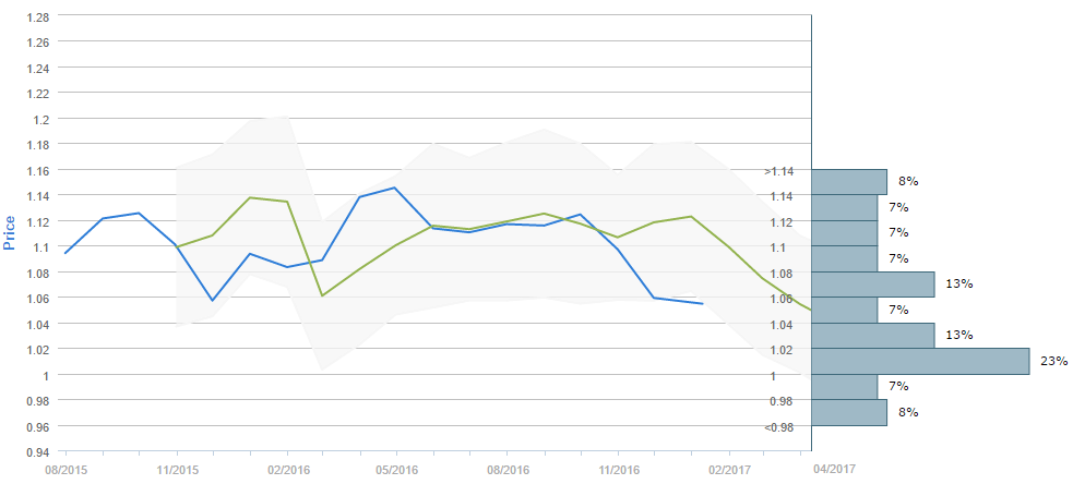 Traders, who were questioned on their longer-term views on EUR/USD between December 9 and January 9 expect, on average, the currency pair to trade around 1.05 in early April. In addition, 29% (+3%) of participants believe the exchange rate will be generally above 1.08 in ninety days and 8% see it above 1.14. Alongside, 38% of those surveyed reckon the pair will trade below 1.02 in three months.